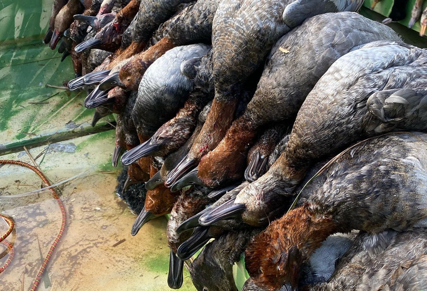 Na zdjęciu głównym: martwe ptaki sfotografowane przez myśliwych, głównie zagrożone głowienki.