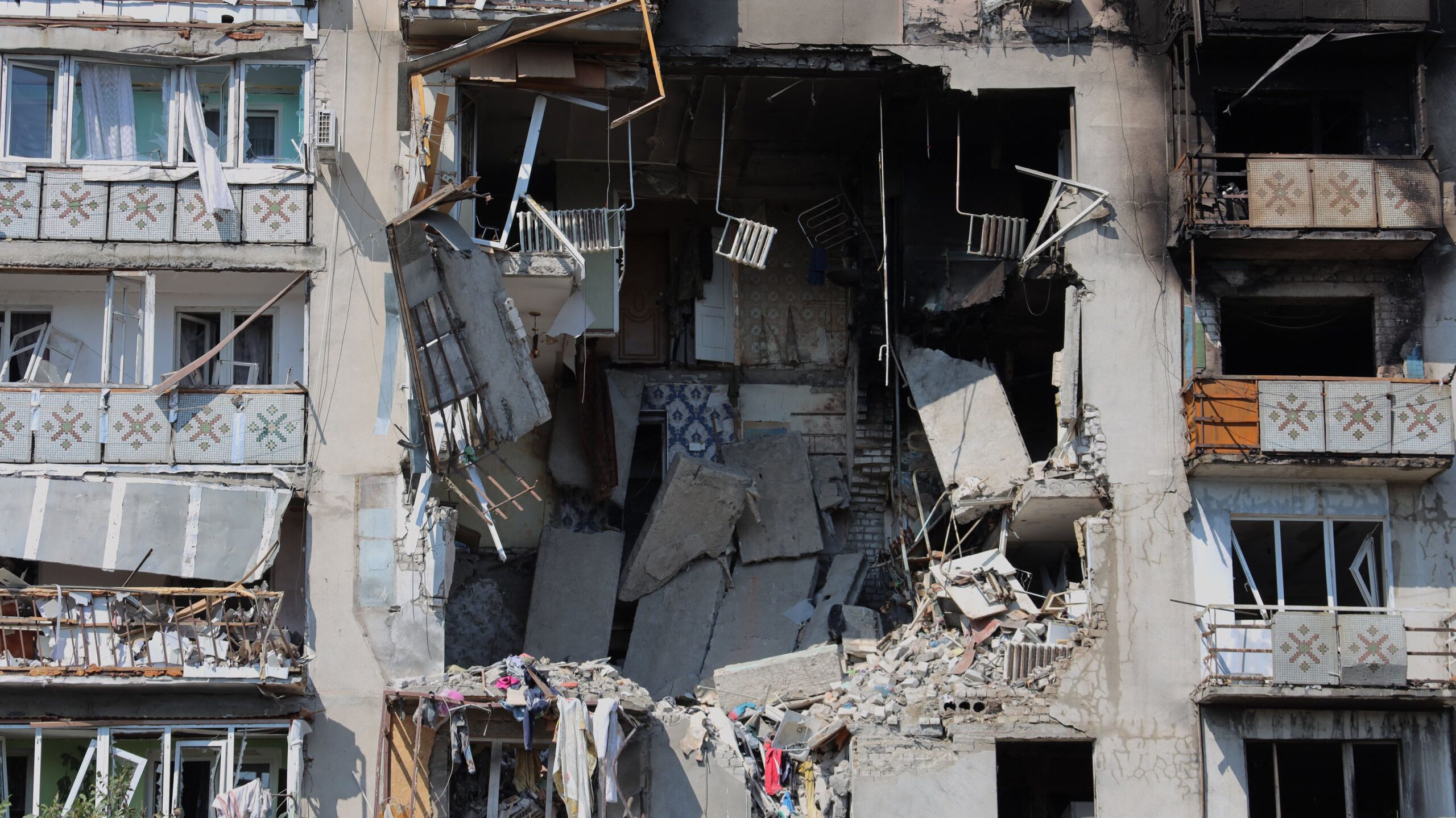Na zdjęciu: uszkodzony budynek mieszkalny po ataku drona w Odessie, w trakcie rosyjskiej inwazji na Ukrainę. 24 lipca 2025 roku. Fot. Oleksandr Gimanov/AFP.