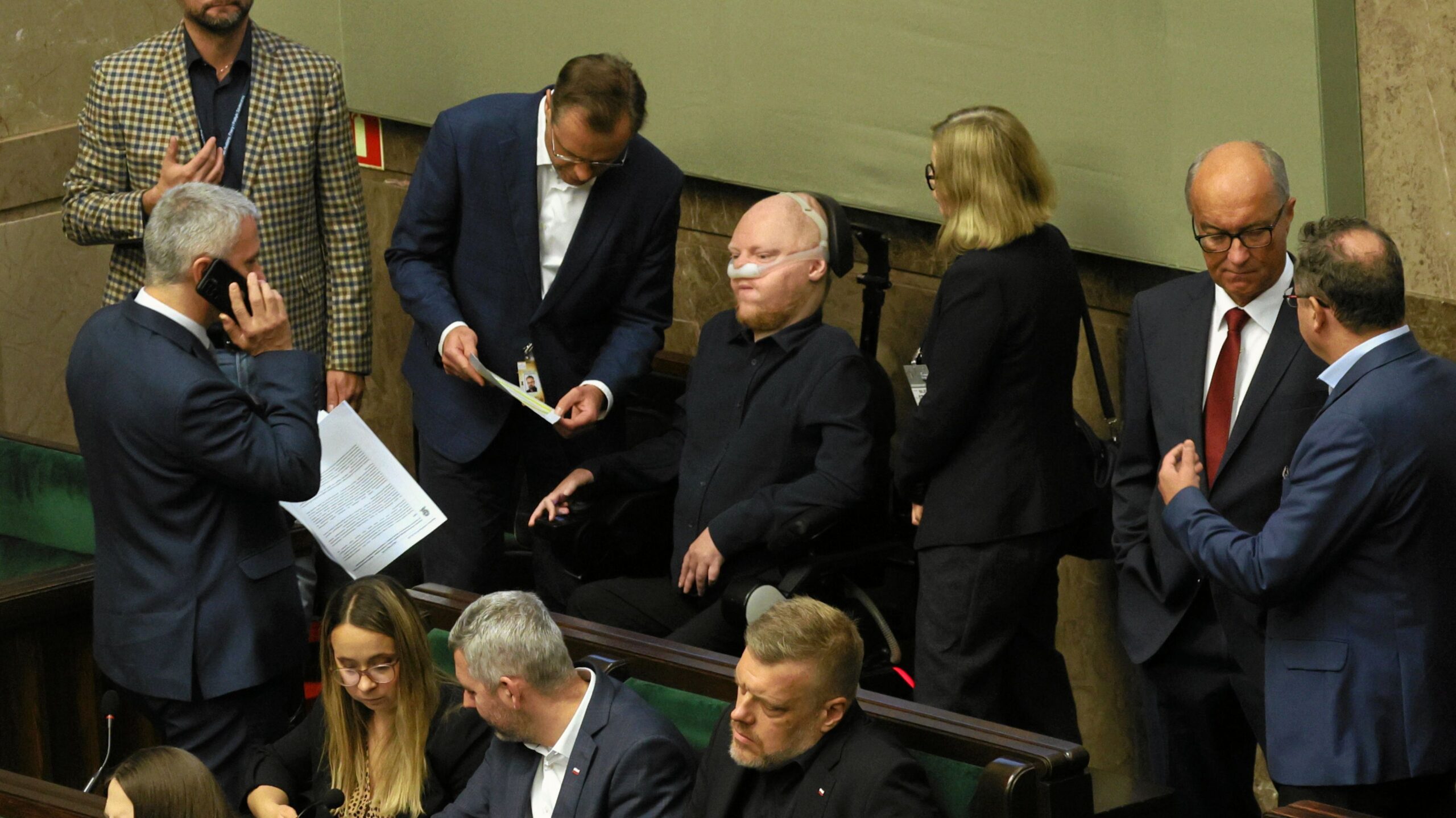 Łukasz Krasoń jest aktywistą na rzecz praw osób z niepełnosprawnościami i sam zmaga się z ciężką niepełnosprawnością (na zdjęciu – minister w ławach rządowych w Sejmie 7 października). To, że to on objął stanowisko Pełnomocnika, środowisko odebrało z nadzieją. Teraz nie kryje rozczarowania.